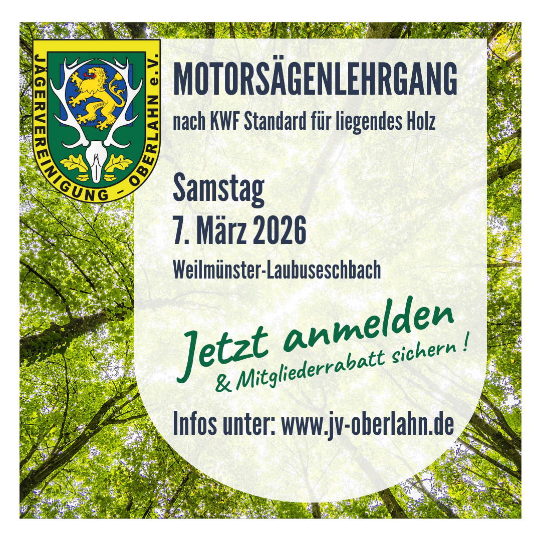 Auch in 2026 bietet die JV Oberlahn wieder einen Motorsägenlehrgang nach KFW Standard für liegednes Holz an. Nach erfolgreicher Teilnahme erhalten Sie ein entsprechendes Abschlusszertifikat.